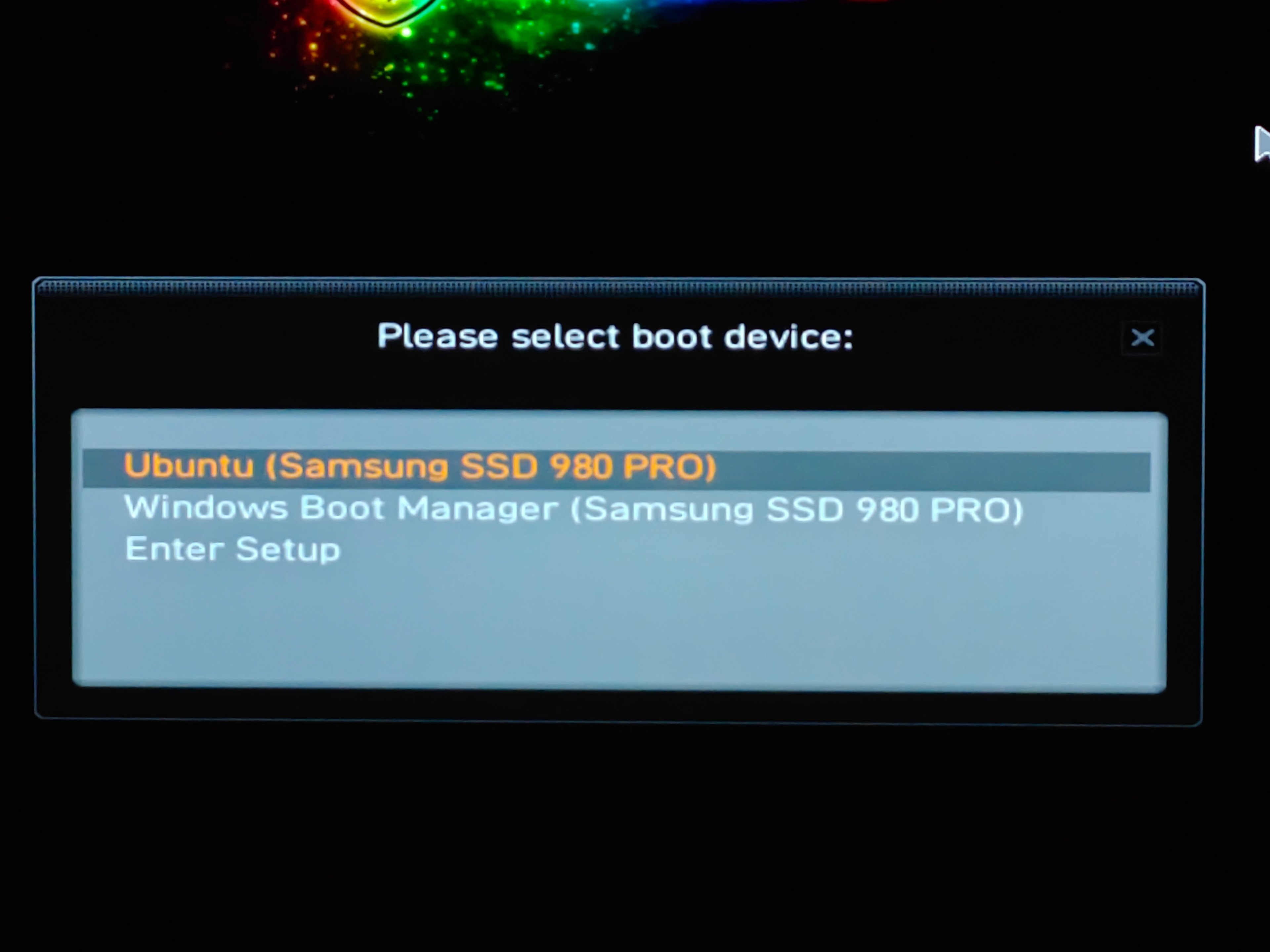An den Booteinträgen kann man erkennen, das sowohl der Linux Bootloader (shimX64.efi,Boot0003) als auch der Windows-Bootloader ( Boot0000) in der gleichen EFI Partition liegen. Und das ist die Partition Nummer 1 auf der Samsung 980.