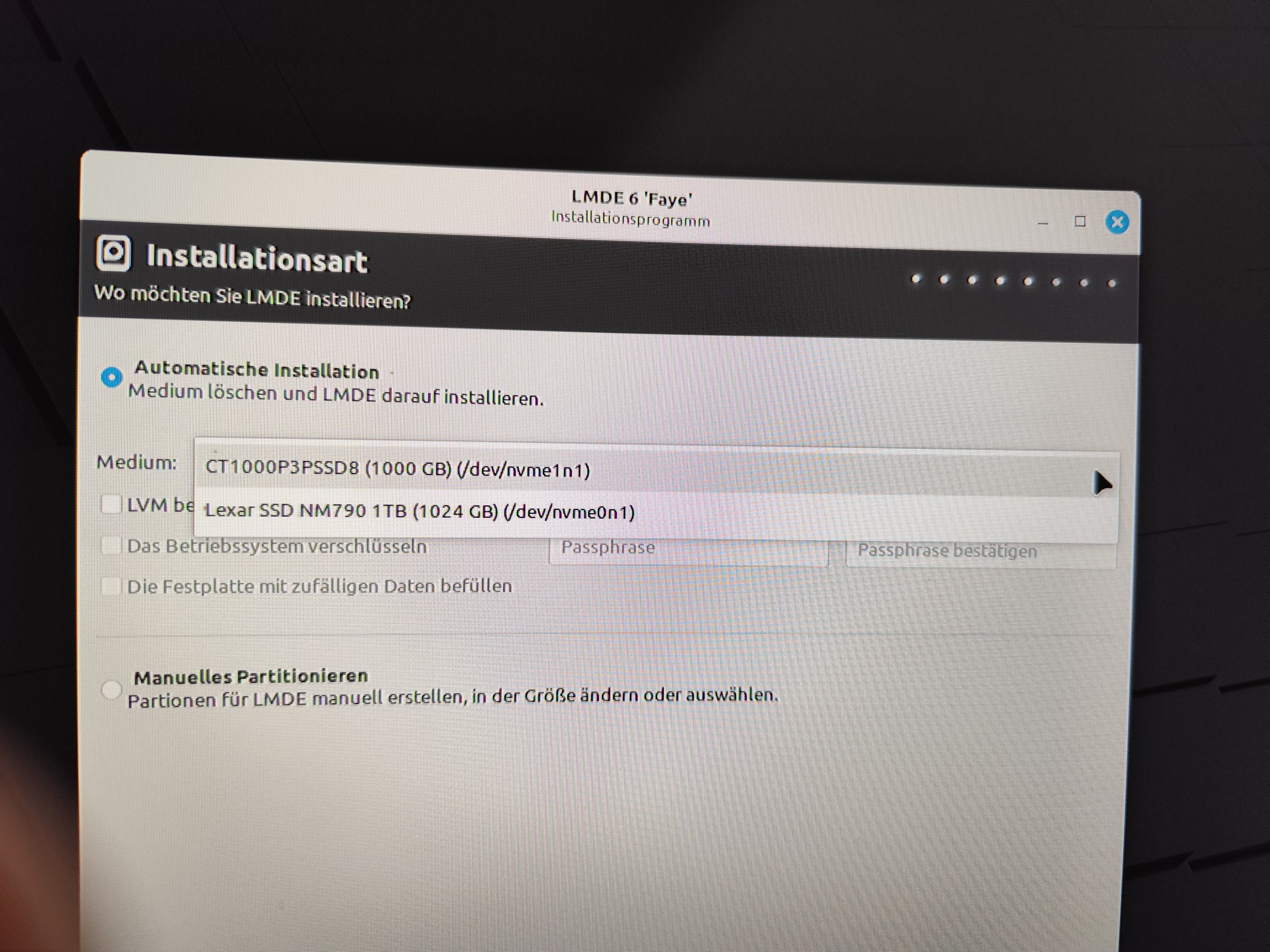 Mint nutzt halt auch den Rotz Installer Ubiquity wo die Zuweisung der ESP scheinbar immer noch nicht funktioniert. Bei einer Distro mit dem Installer Calamares klappt das problemlos ohne abklemmen zu mĂŒssen.