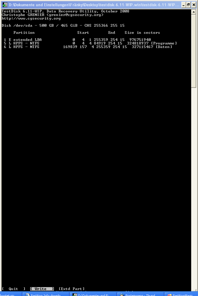 PartitionInfo von Partition Magic zeigt folgendes an: