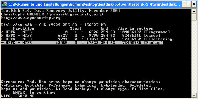 Mit Testdisk hab ich ein wenig angst da ich in anderen Threads gelesen hab "Auf eigene Verantwortung".