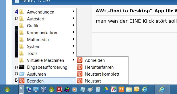 Der Desktop ist bei mir auch nur ein schmückendes Beiwerk das zwischen den ganzen Fenstern auftaucht. Und wenn ich da alles mit Fenstern voll habe, sei es Job bedingt mit allem was Office an Tools bietet oder privat mit einem Spiel im Fullscreen und nem Browser oder Film auf dem anderen Monitor würde es mich tierisch nerven für das Tool der Wahl erst alles zu Minimieren um dann vom Desktop das nächste zu starten.
