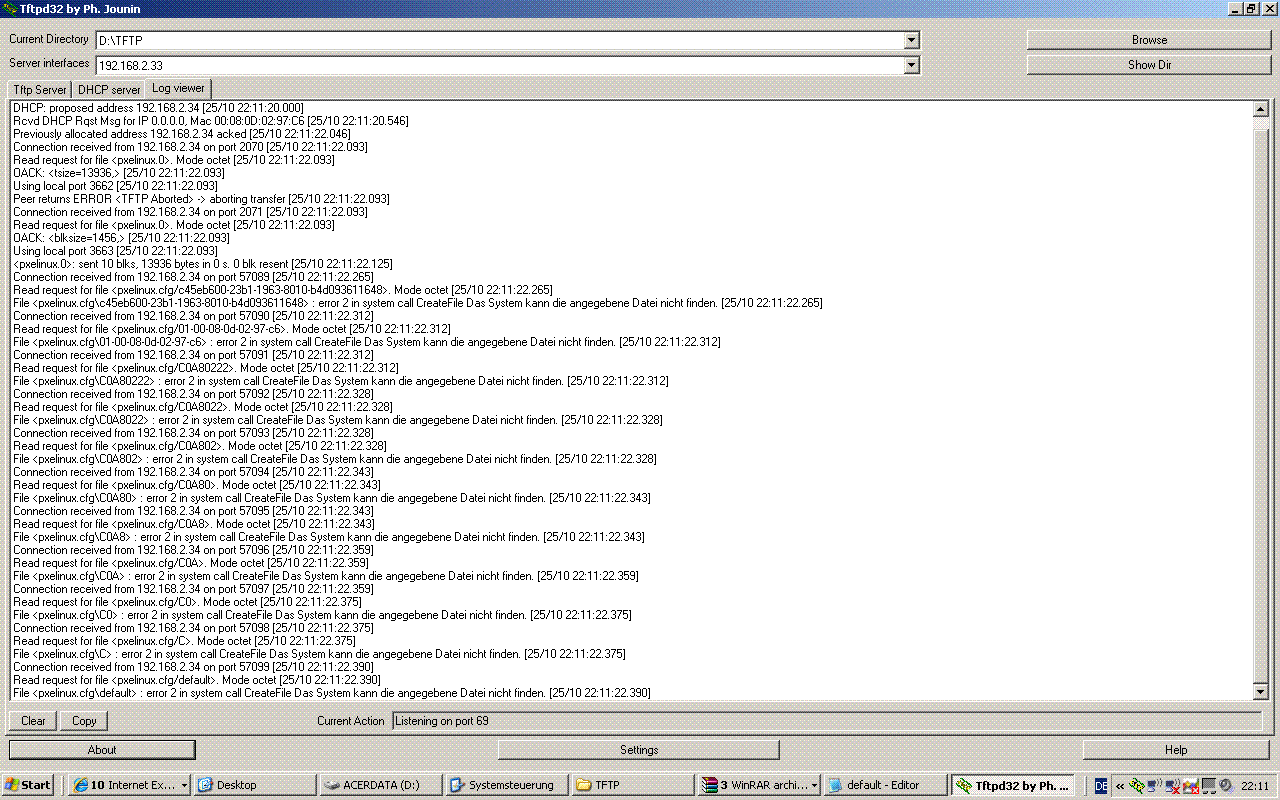 und das Programm Tftpd32 starten jetzt auch nicht mehr korrekt da kommt in mein PC die Fehlermeldung: