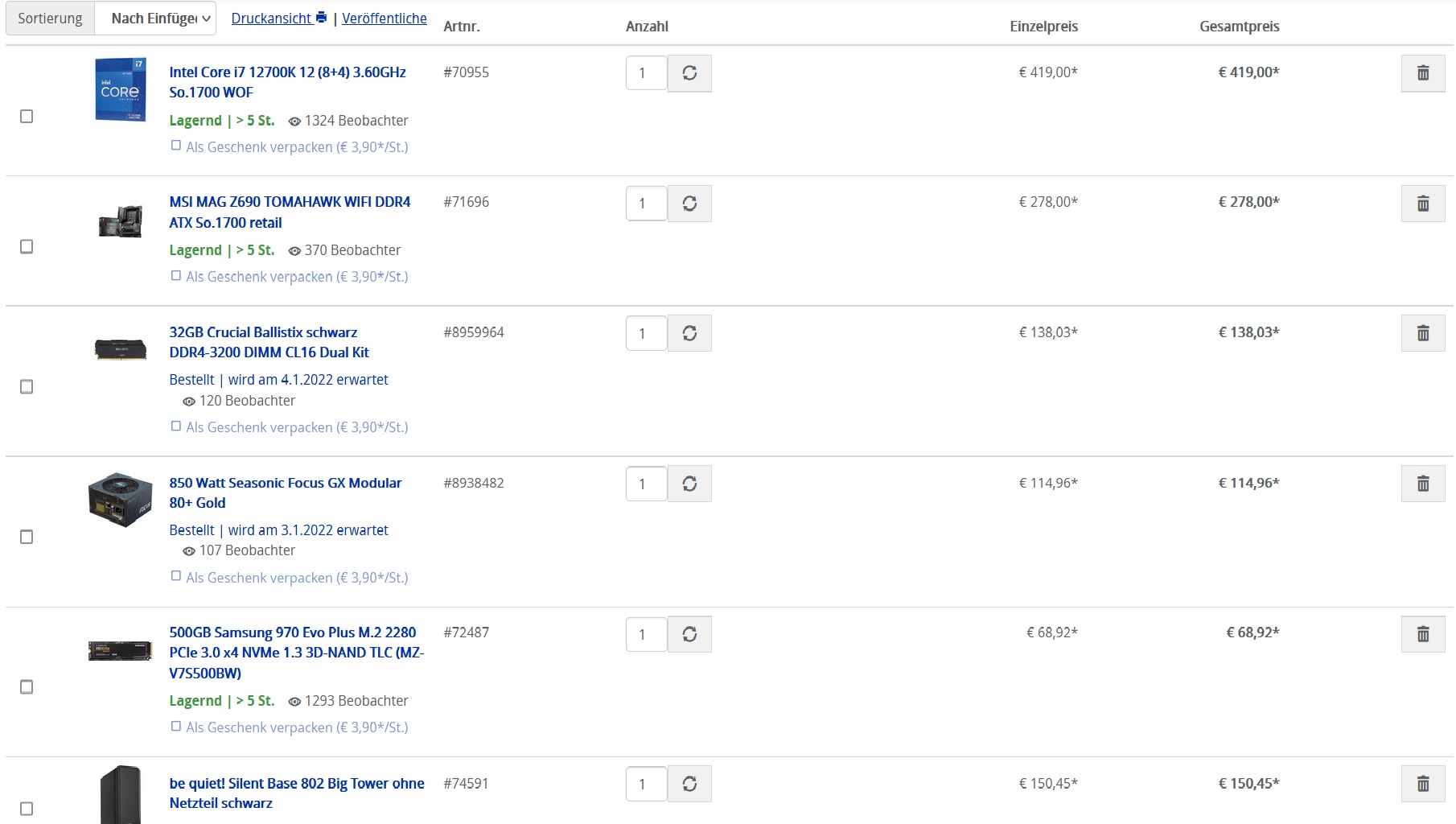 (Bitte tasächlich hier auflisten und nicht auf Signatur verweisen, da diese von einigen nicht gesehen wird und Hardware sich ändert)