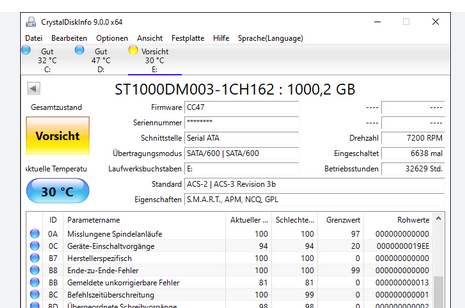2) Deine Seagate HDD mit CrystalDiskInfo zu prüfen. Ich habe da 2017/18 6 Stück davon entsorgt.