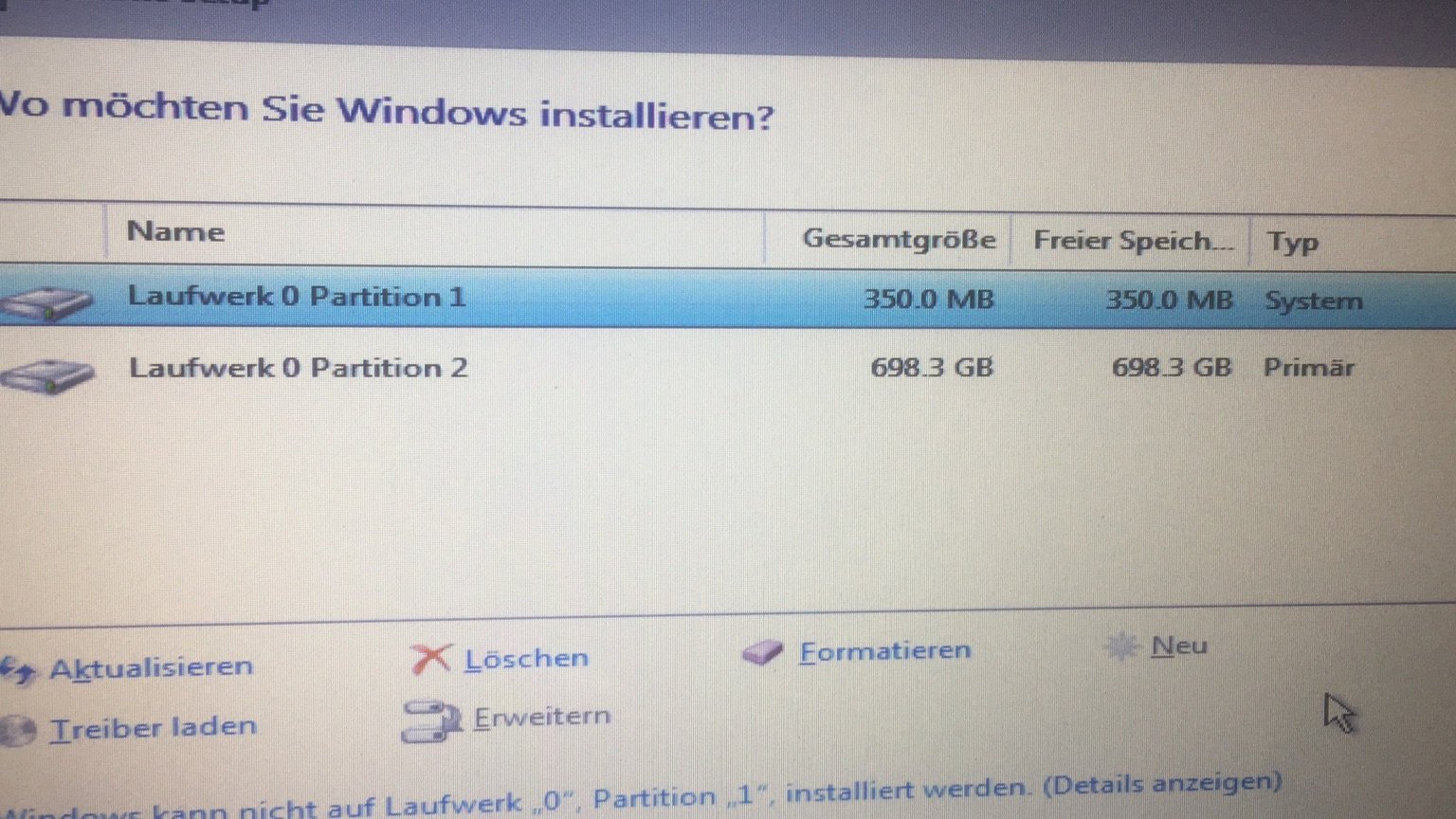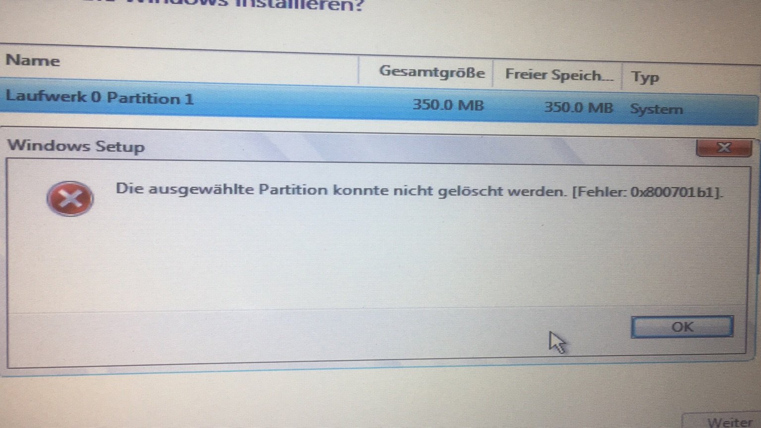 könnte eine defekte Setup Partition vorliegen ?