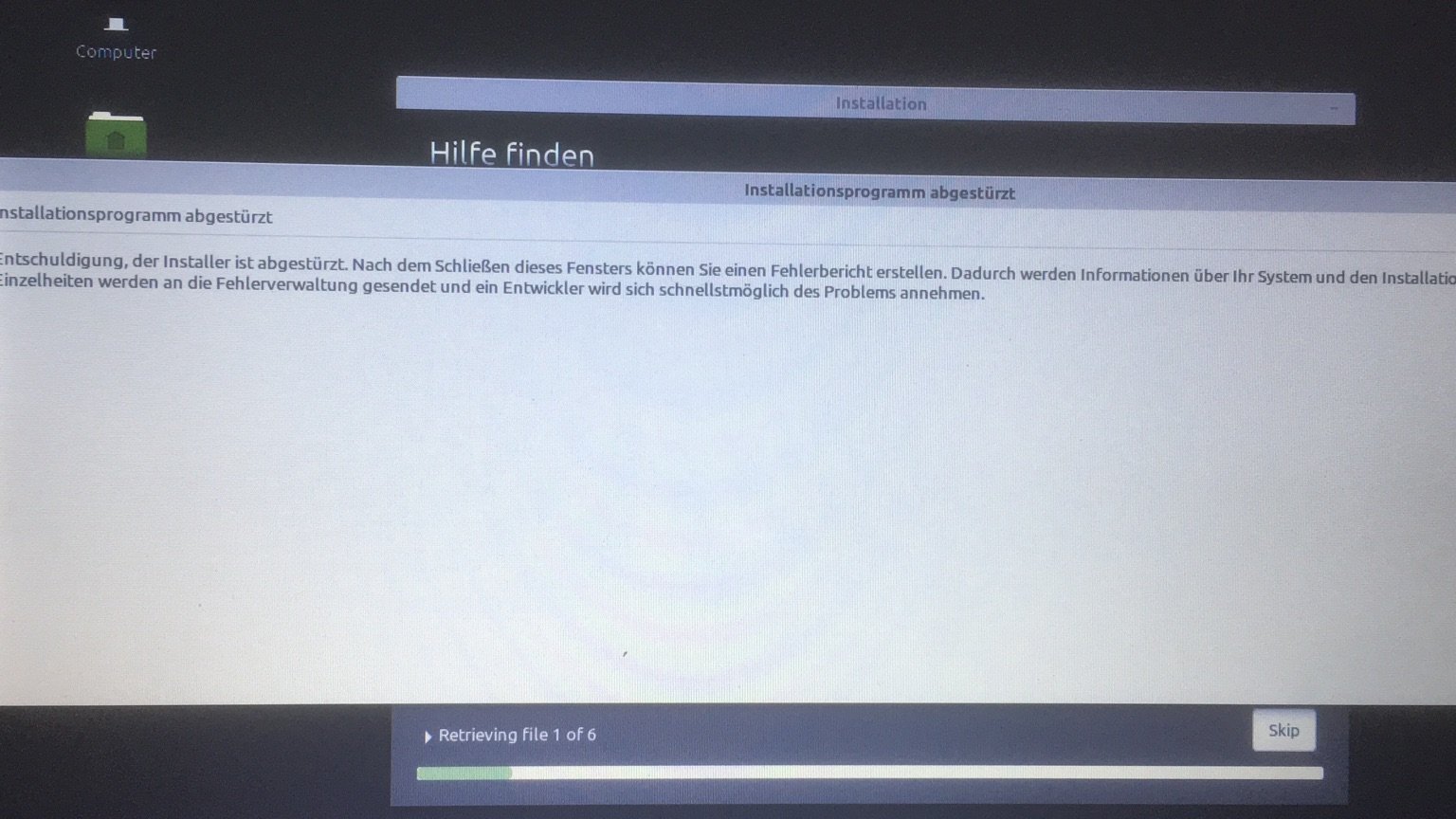 aber trotzdem kann ich das System nicht Installieren, weil immer diese Fehlermeldung kommt
