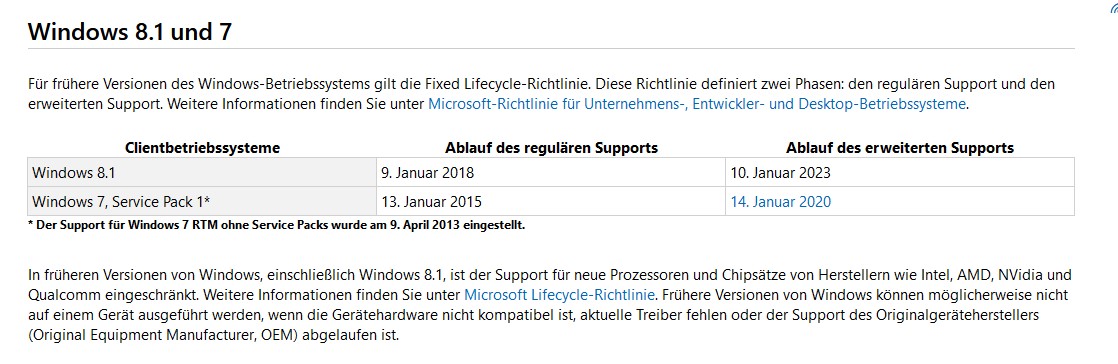 erweiterten Supports („Extended Support“). Endanwender erhalten dann nur noch Sicherheitsupdates, Hotfixes zum Beheben von Problemen bleiben dem Unternehmen vorbehalten. Und mit neuen Funktionen bestückt Microsoft die betreffende Software schon gar nicht.