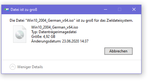 ich versuche seit einigen Minuten vergeblich ein bootfähiges Installationsmedium von Windows 10 auf einem meiner USB-Sticks zu installieren.