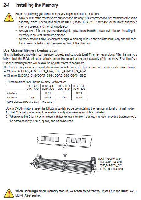 ... Ich bin zufällig darauf gekommen, normal wird ja A2/B2 im dual channel gesetzt.