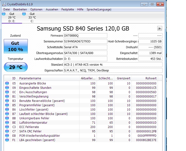 Hast Du denn mal geprüft, ob der Rohwert von C7 nun stabil bleibt? Wenn nicht, war die Schatzkiste vielleicht eher ein Mülleimer. Wie sieht es mit dem Rohwert von EB aus?Neunmalkluger schrieb:Aus meiner Schatzkiste habe ich noch mal ein anderes SATA-Kabel verwendet.