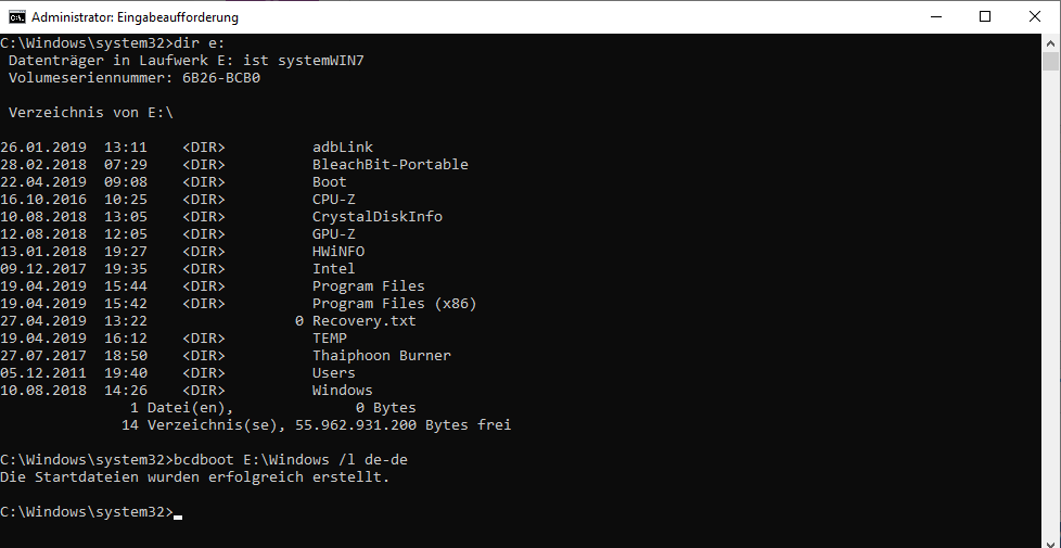 - zur Sicherheit auf C: gewechselt und den Inhalt anzeigen lassen
