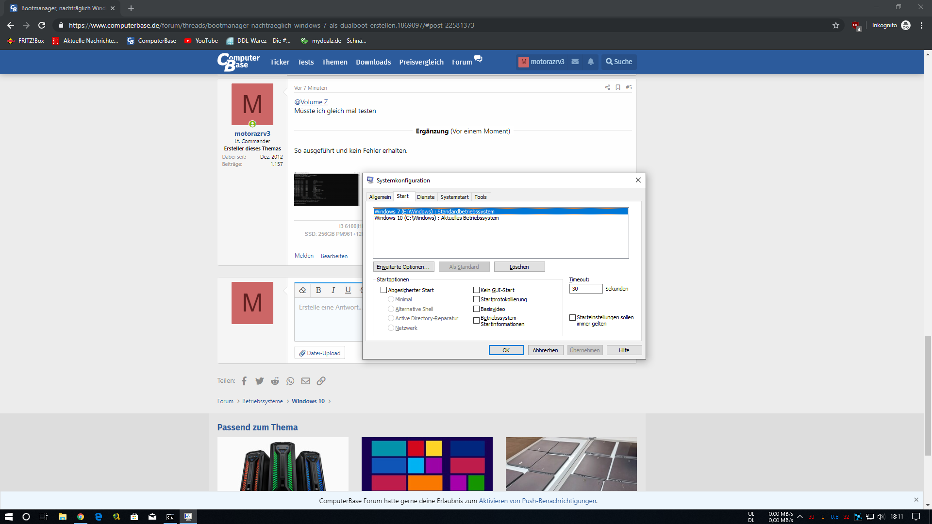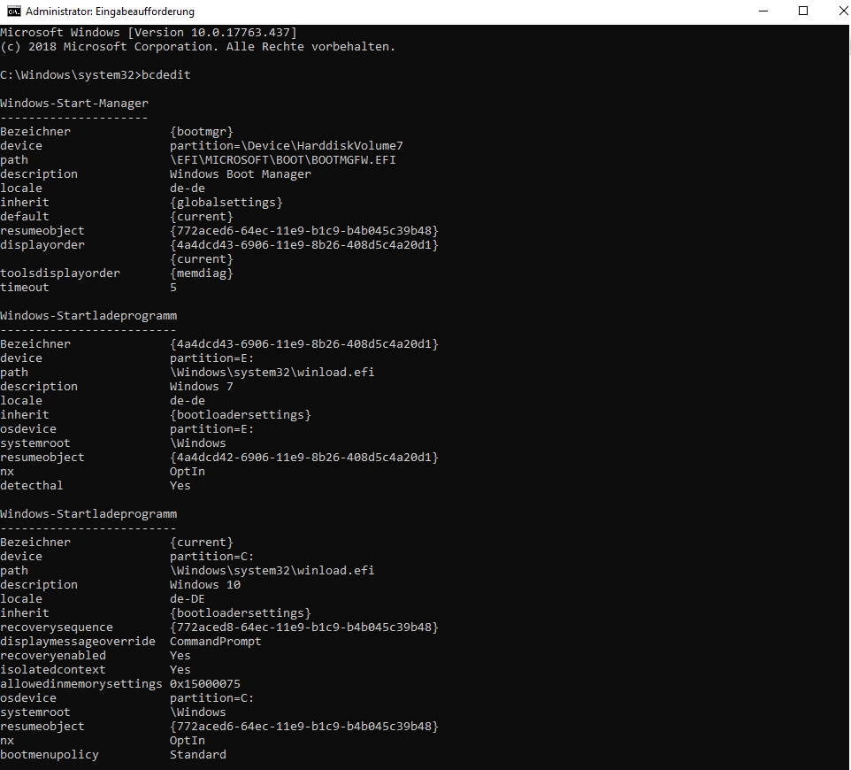 Danach ebenfalls im Netz nachgelesen und so empfohlene Lösungen wie fixboot, fixmbr, rebuildbcd ausprobiert. Das Ergebnis blieb allerdings die gleiche Fehlermeldung. Also dachte ich mir sch..ß drauf, machst du halt W10 1809 komplett neu. Die ISO auf eine DVD gebrannt, im UEFI alle anderen Laufwerke bis auf die M2 SSD und das DVD ROM Laufwerk deaktiviert und die W10 Instalation gestartet und vollendet. Mein Gedankengang dahinter war, W10 benutzt du vorrangig, W7 nur zwischendurch sehr selten und den DualBoot bekommt man später auch genauso hin.