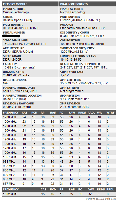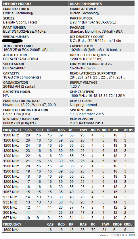 - Arbeitsspeicher (RAM): 4x16GB Crucial Ballistix Sport LT grau DIMM Kit 32GB, DDR4-3000, CL15-16-16 (Lief bisher mit XMP Profil @3000Mhz)