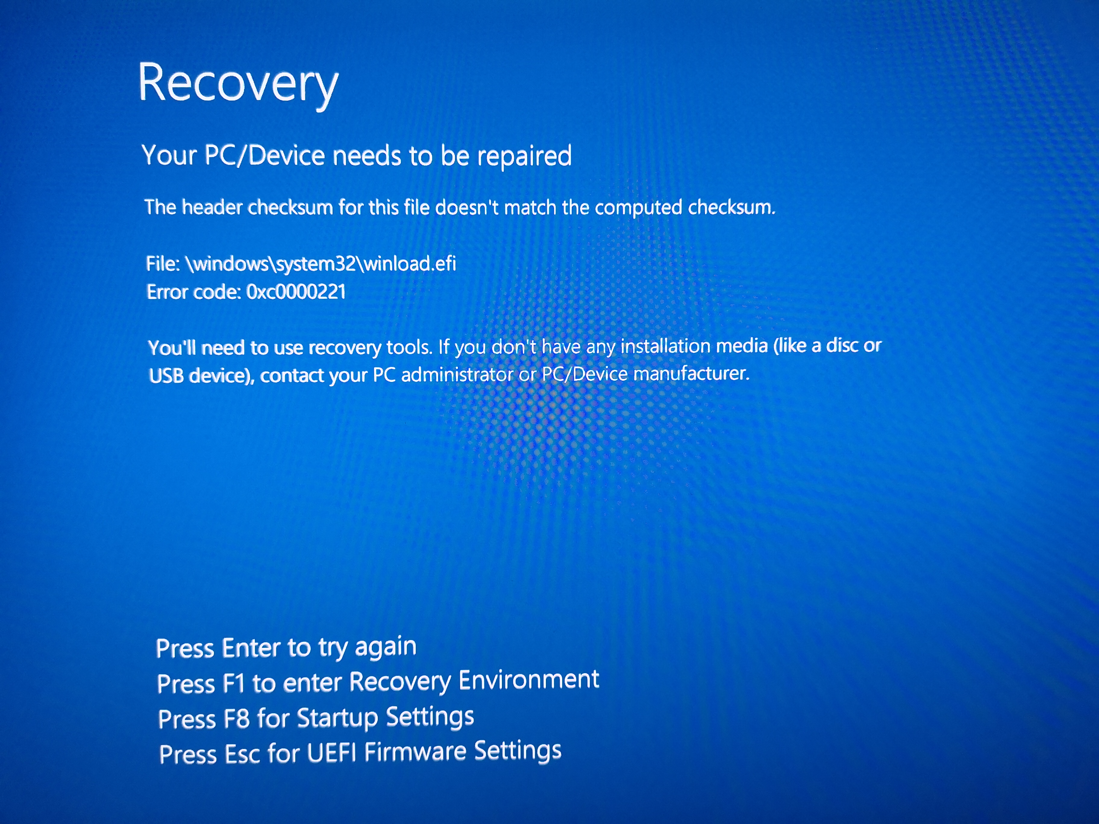 Windows hing nun permanent in dem "Repair mode" und ich bin nach einigen Ansätzen nicht mehr auf die Windows Oberfläche gekommen. Danach habe ich folgendes gemacht: