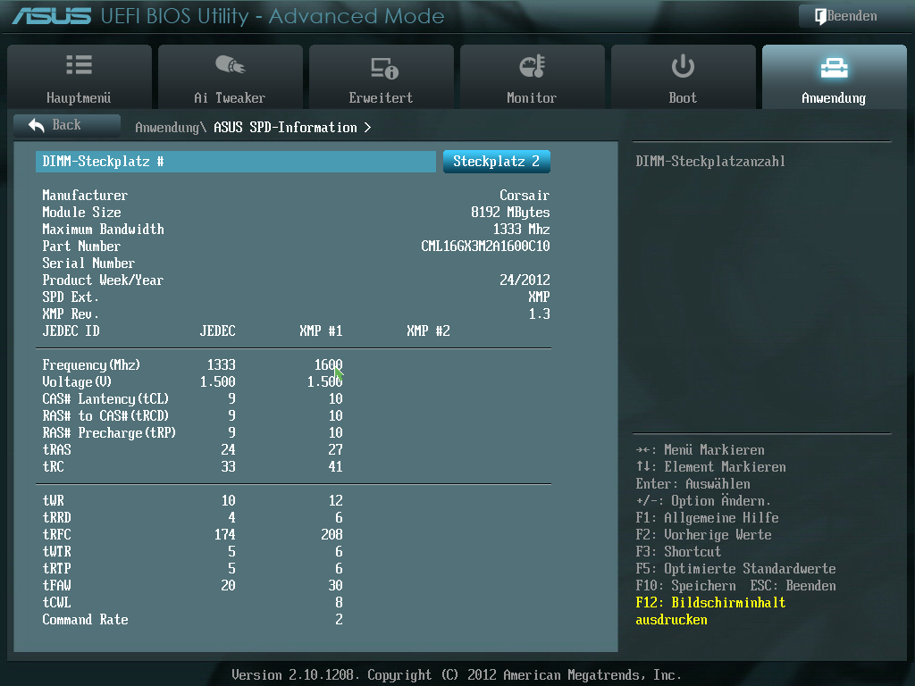 verbaut. Seit Montag hat mein PC Bootprobleme, wenn Ich beide RAM Riegel eingebaut habe. Sie sind in den, wie von ASUS empfohlen, blauen Slots eingebaut und werden über das BIOS per SPD erkannt. Die Einstellungen sind mit XMP geregelt. Entferne Ich nun einen RAM Riegel (egal welcher und auf welchem Slot er liegt), startet das System. Ich hatte nie Probleme mit meinem PC, doch seit Montag Abend zickt er plötzlich. Es wurden keine Windows Updates, Treiber oder Programme installiert, die dies verursacht haben könnten.