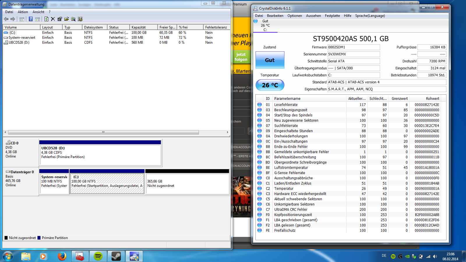 Ich habe bereits via UBCD Prozessor, Graka, Ram und Festplatte getestet ohne Fehlermeldung. Den Arbeitspeicher habe ich auch schon testweise ausgetauscht.