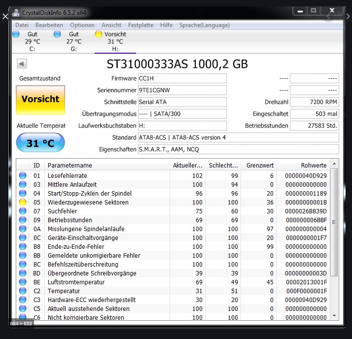 Hier noch ein Bild zum Vergleich, das nicht zu dir gehört, da sieht man eine Festplatte die in Ordnung ist.