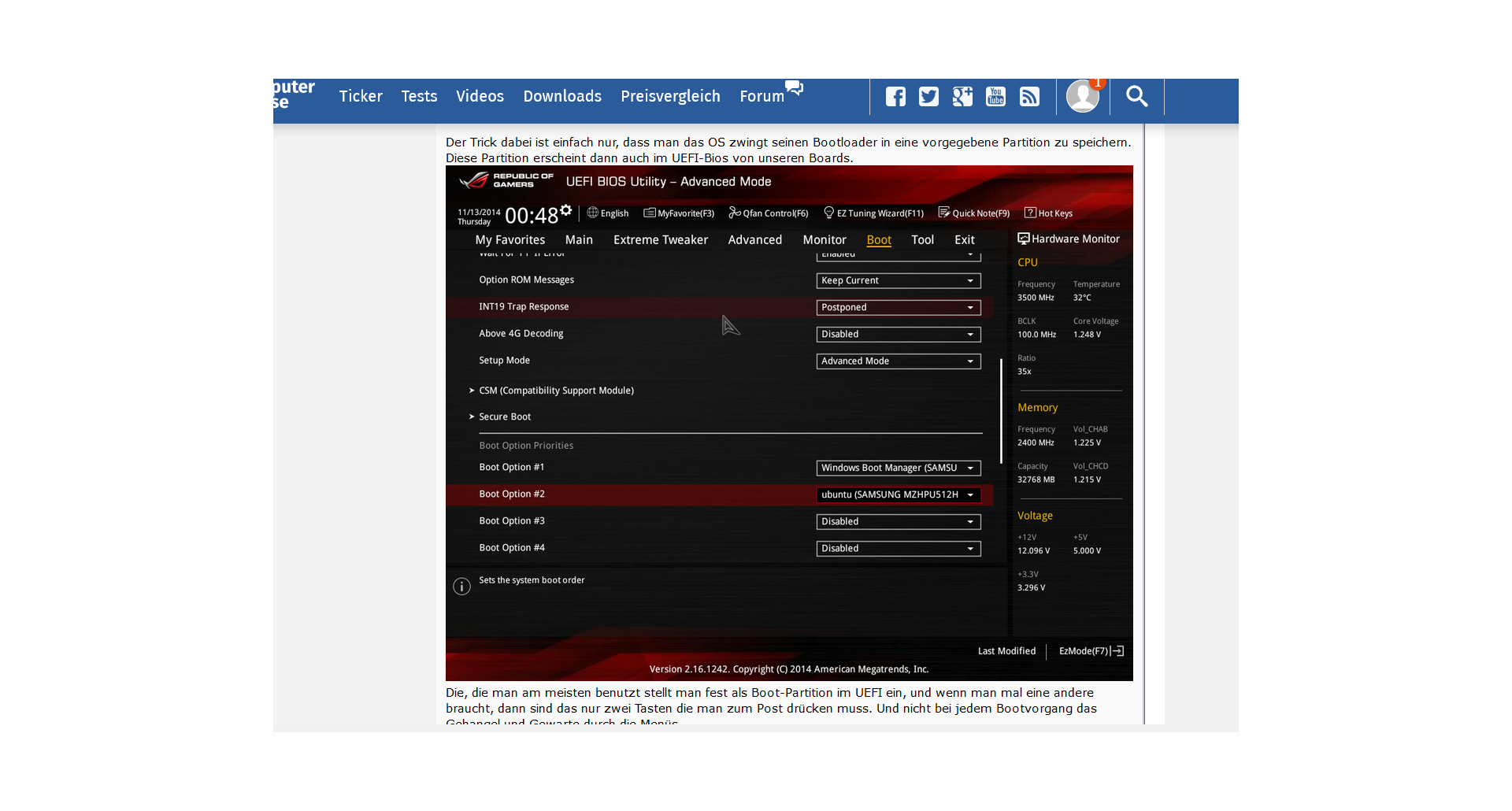 Da bitte ich Dich, mir das näher zu erläuternIch hätte das ja komplett umgangen, so dass ich im Bios das OS einstelle was immer bootet, und ich mit dem Bios-Quickselect-Button beim Post vom Bios das 2. OS auswähle, wenn ich es dann mal brauche.