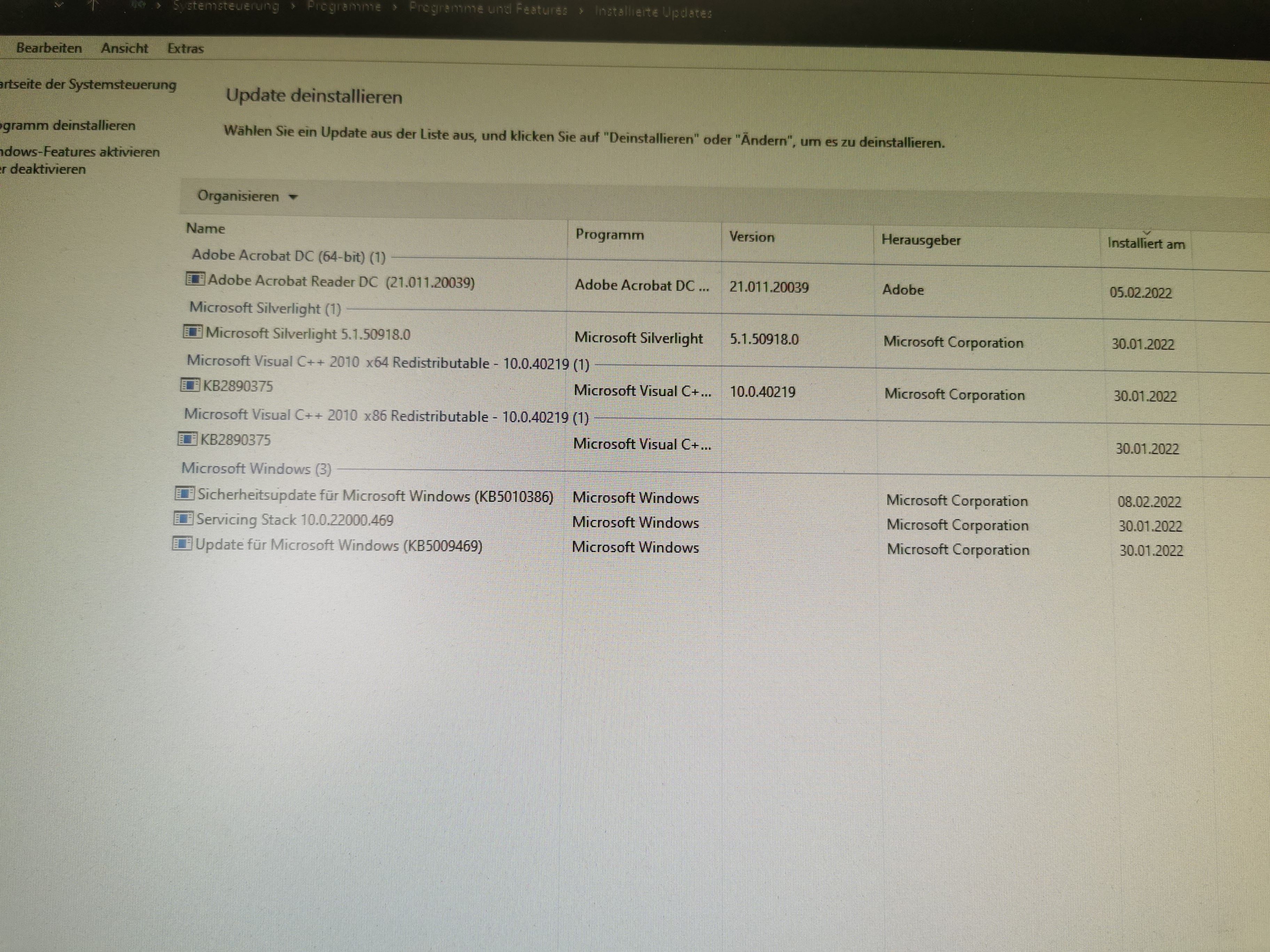 Letzte updates deinstallieren