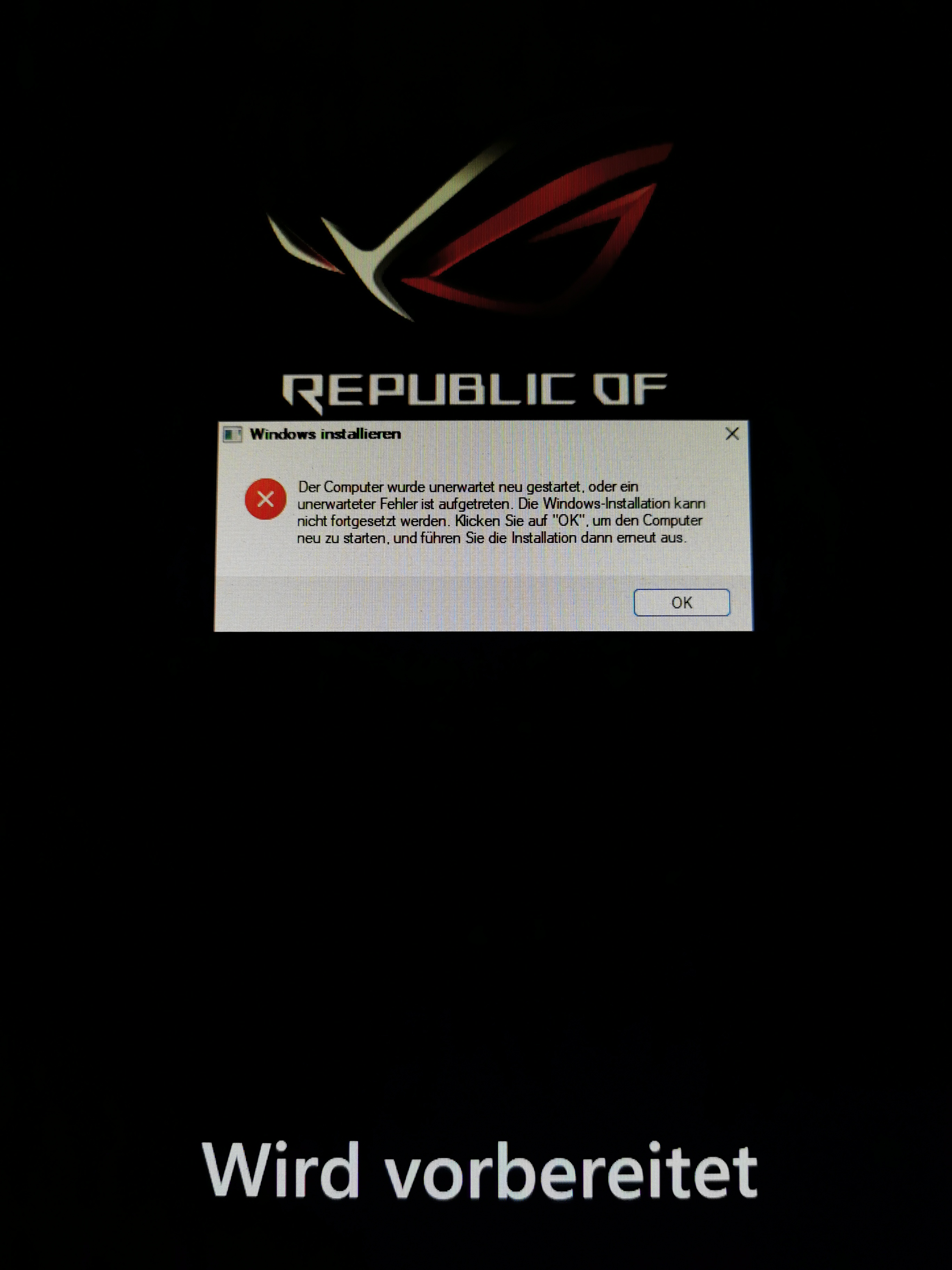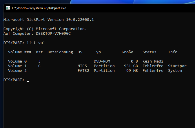 Würde jetzt alle Platten abstecken und die Platte über die Eingabe Aufforderung formatieren.