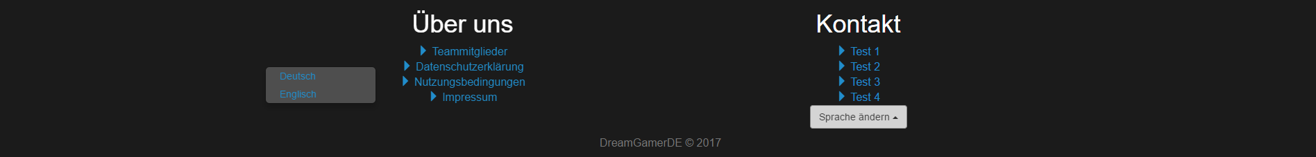 Hallo, Ich bin ja wie auch schon im post zuvor angesprochen eine Webseite aktuell am Programmieren. Und dort bin ich aktuell am Footer dran. Und dort soll es einen Button geben ich habe bloß dass Problem das dieser nicht am richtigen Ort ist. Also der Knopf an sich schon aber das Dropup Menü nicht. Hier ein Bild: