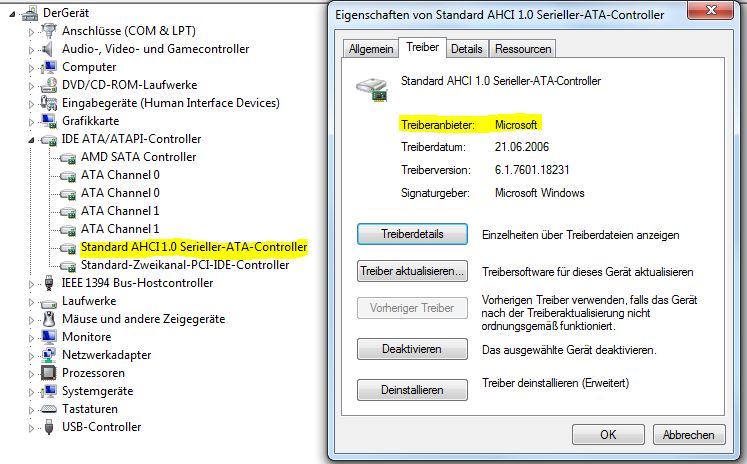 Der AHCI Controller - Treiber ist aber von Microsoft: