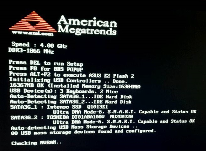 Das jetzige Problem ist das sich der Pc beim ersten Start nun immer bei "CheckingNVRAM" Aufhängt,