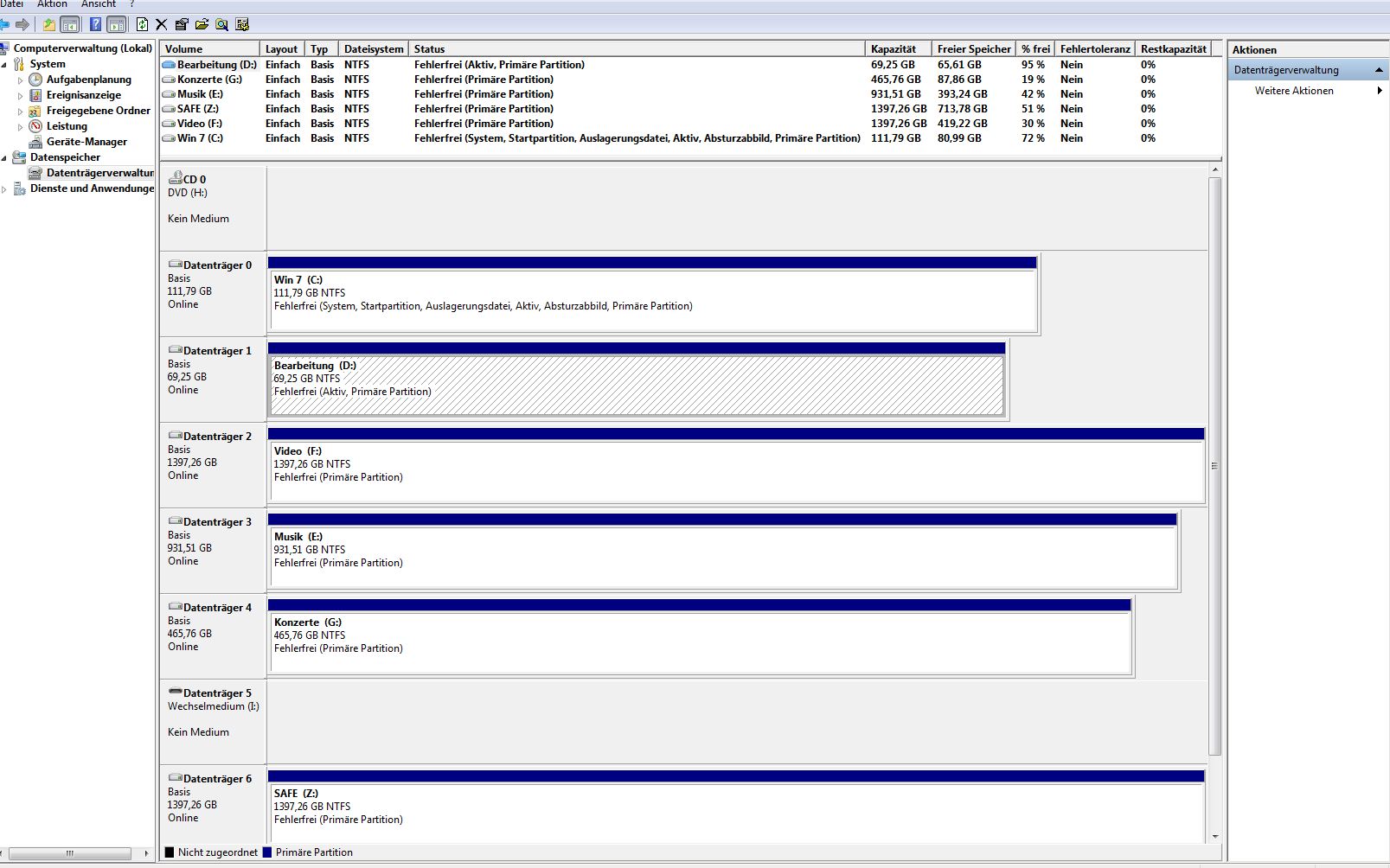 Du gehst auf Start, Systemsteuerung,Verwaltung,Computerverwaltung und dann links auf Datenträgerverwaltung. Dann zeigt er Dir in der Mitte Deine Datenträger an. Bei mir sieht das dann so aus= Anhang anzeigen 249354