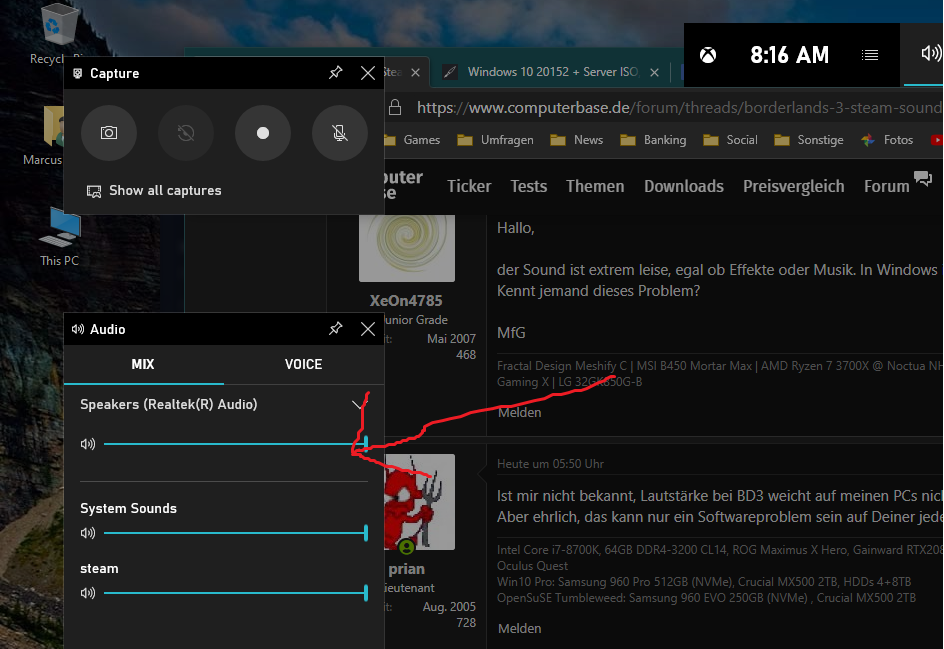 Alternativ in den Soundeigenschaften schauen, ob bei Apps mit Voice Unterstützung alles um 80% heruntergedreht werden soll: