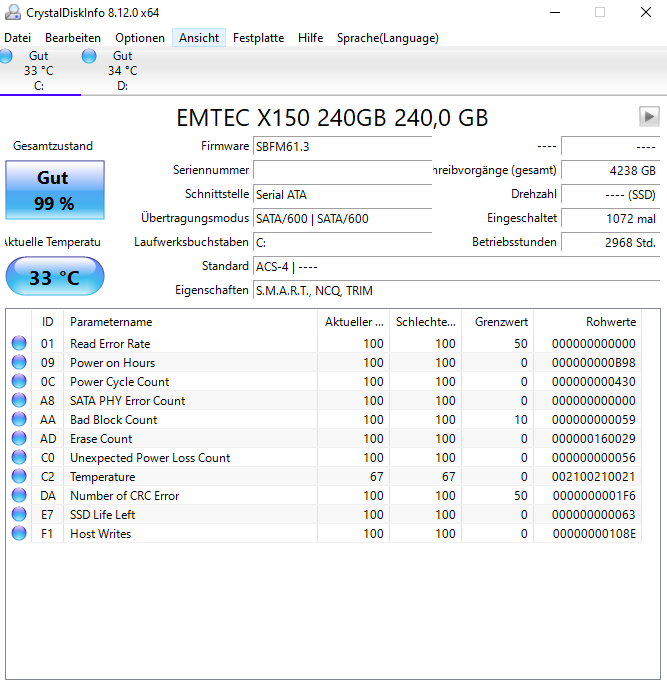 Windows 10 Neuinstallation hat nichts gebracht. Vorher natürlich Festplatte formatieren. Komplett, dass es nur noch eine Speicherangabe gibt.