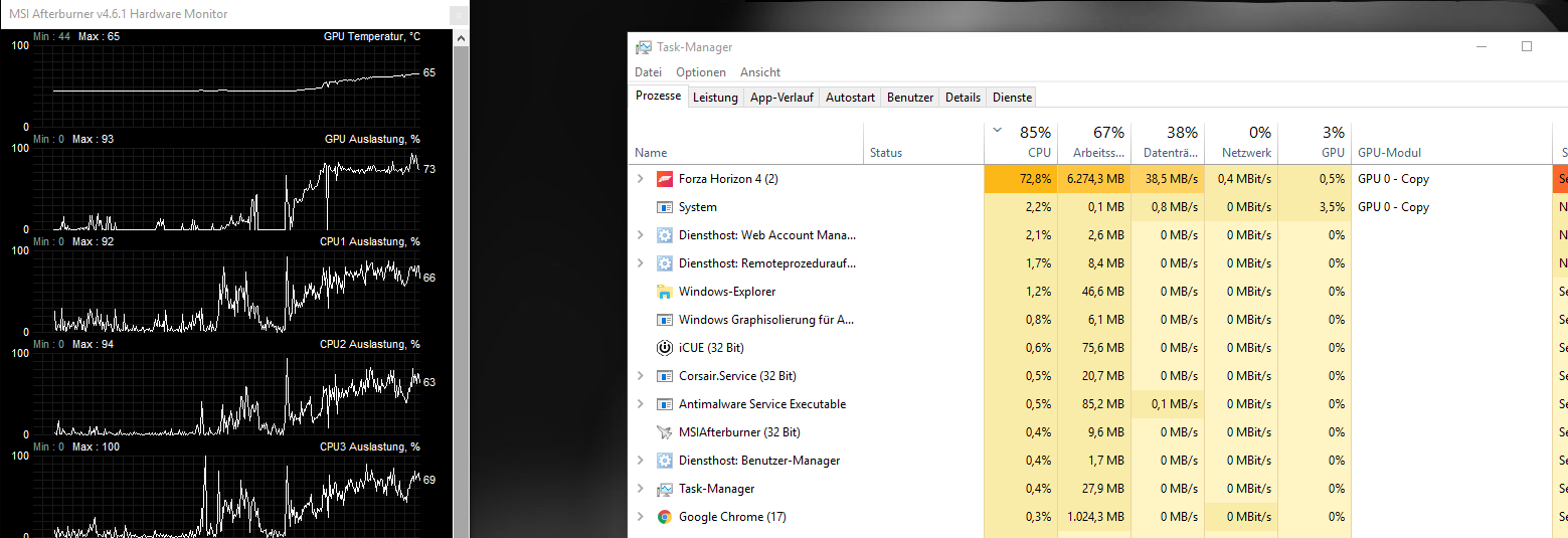 Ich habe ziemlich derbe FPS verluste in der Innenstadt z.b. Mir ist auch klar das das System das eigentlich locker packen sollte deshalb hab ich mich ja hier gemeldet.nicK-- schrieb:Also Forza profitiert von Kernen und skaliert recht ordentlich damit, es läuft ja auch mit DX 12, wo ist jetzt genau dein Problem? Hast du nicht genug fps ? Die 1080GTX bzw Nvidia kann in dem nicht ganz das zeigen was sie in anderen Spielen liefern. Wie schon gesagt dein System müsste für 144fps locker reichen. Haust du einen 8700K rein hast du je nach Grafikkarte dann 200fps ... irgendwann ist halt CPU Limit und dann kommt es wieder zum GPU Limit, irgendwas limitiert eben immer.