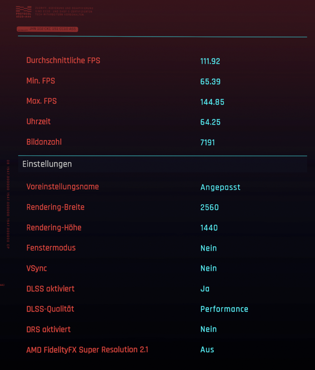I used 1440P,DLSS PERFORMANCE,RT ULTRA,rest ultra for testing fps.