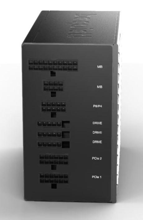 Die Vega 64 ist mit 2 PCIe Kabeln (PCIe1 VGA1 + PCIe2 VGA2) angeschlossen.