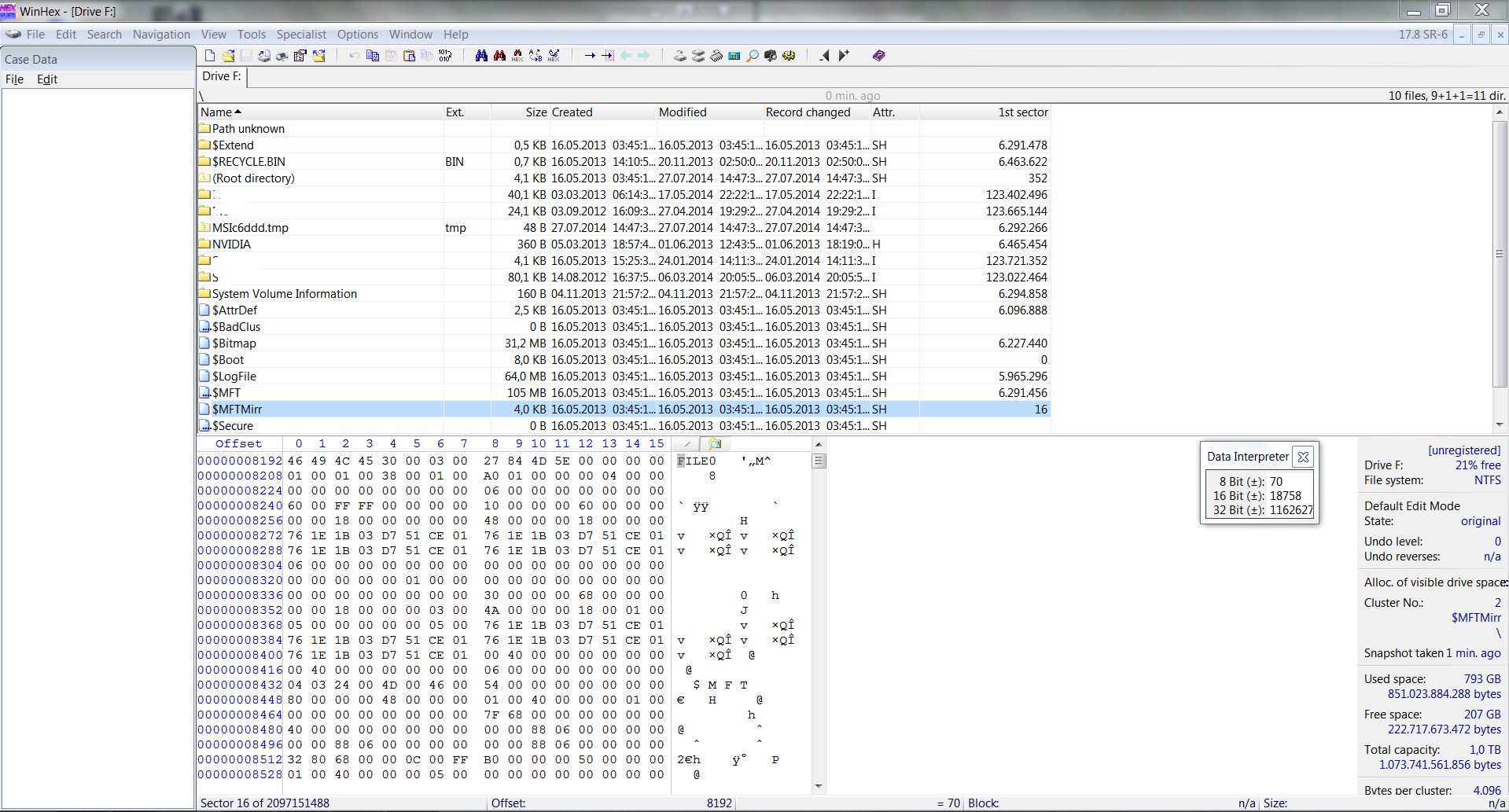 Man sieht sogar deutlich mehr, der Header ist auf jeden Fall der Header am Anfang des TrueCrypt Volumes. Ein paar Daten sollte man mit Programmen wie GetDataBack bereits retten können, wenn man allerdings mehr will, dann muss man jetzt versuchen die Fragmente zusammenzusetzen: dazu ist jedoch eine zweite HDD und eine Linux Live-System nötig.