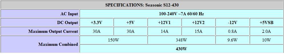 Netzteil: Seasonic S12-430 (430 Watt)