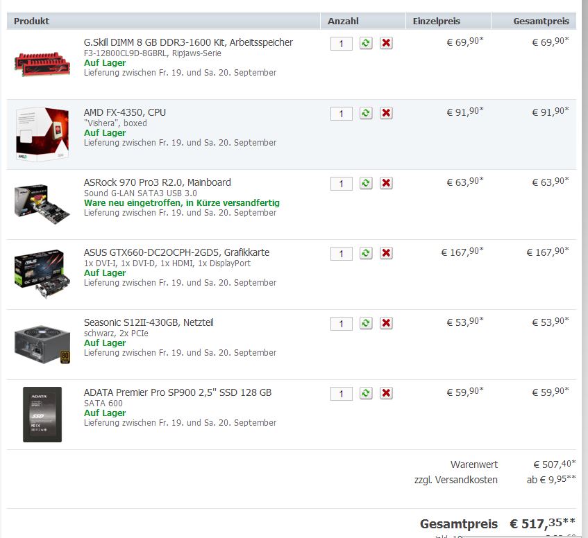 Die Komponenten sind im angehängten Bild zu sehen. Der ganze Spaß sollte nicht über 700€ hinausgehen und