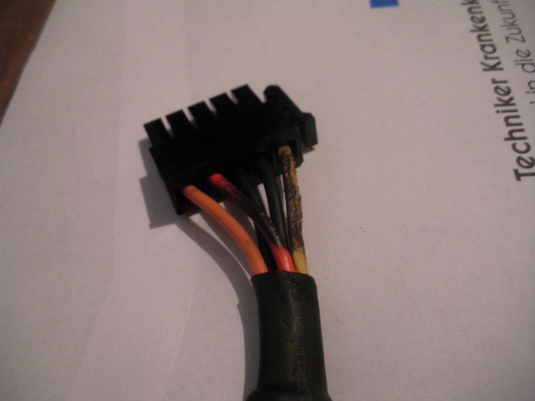 Selbst die "Verbrannten Kabel" funktionieren tadellos. Die Grafikkarte auch, na klar die Lüfter nicht, aber Bild etc läuft!