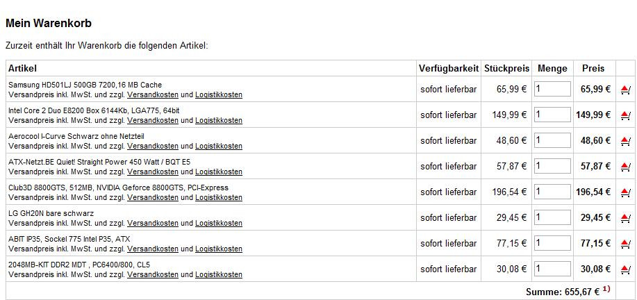 Ich habe mich entschlossen, mir einen neuen PC zuzulegen, den ich sehr viel zum spielen nutzen werde. Also hab ich mich ein bischen schlau gemacht und bin in einen Laden gegangen, der mir volgendes Angebot gemacht hat: