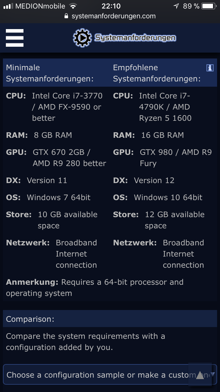 Habe es davor mit einem i3 Pc gespielt 12GB Ram DDR 3 und Gforce GTX 1050 und hatte zwischen 35-50FPS. Pc wurde verschenkt.