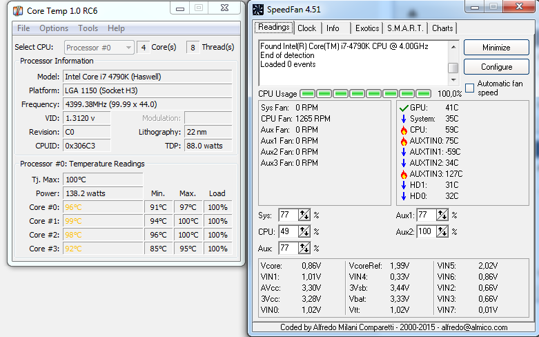 Unter Last zeigen Speedfan und Coretemp ziemlich unterschiedliche Werte an. Im Idle zeigen beide Programme ca. 40 Grad an. Welches der beiden Programme passt den nun und sind die Werte im normalen Bereich?