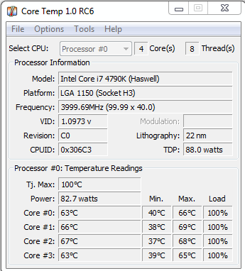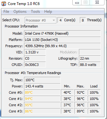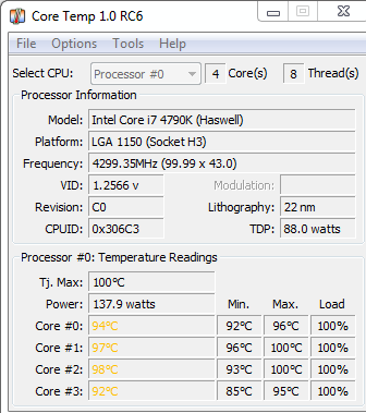 Da ist ein gutes Programm, um seine maximal Temperatur zu ermittel. Aber die meisten Anwendungen im normalen Alltag werden kaum in die nähe dieser Temperaturspitze von Prime95 ran kommen.
