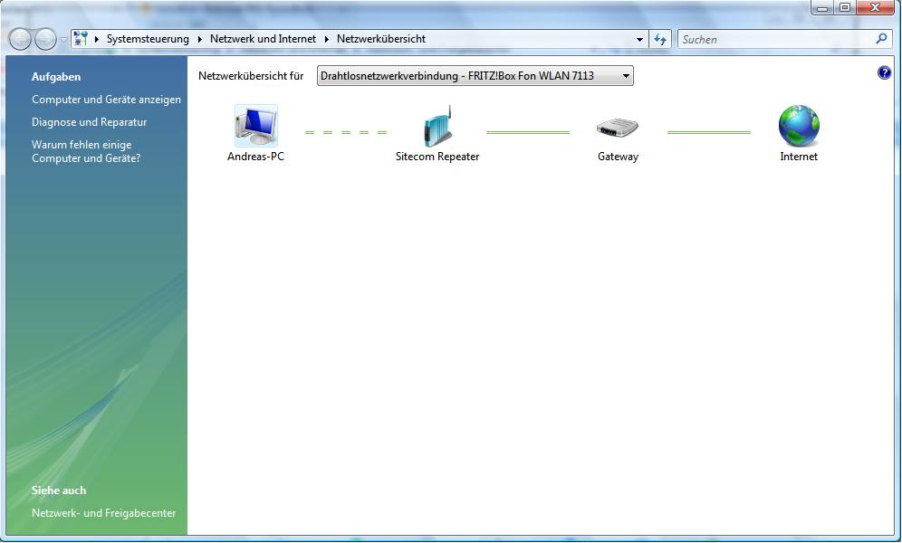 Laut Windows ist die Signalstärke nun "Hervorragend", ohne Repeater "Ausreichend" bis "Niedrig"