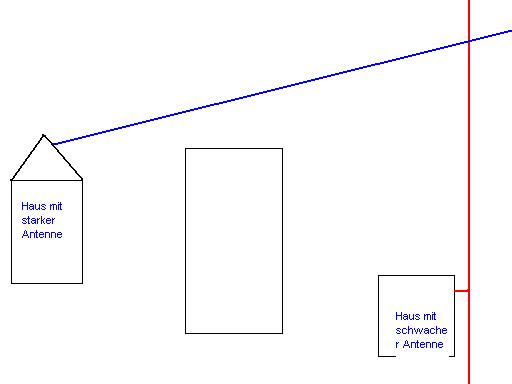steht das zentrale Gebäude. Es steht auf einer Erhöhung (insgesamt ca. 10m höher als Zielgebäude. In diesem Haus befindet sich der zentrale PC mit DSL-Flat. Dieser PC soll Zielpunkt für einen dort befindlichen Laptop und den PC im "roten Haus" sein.