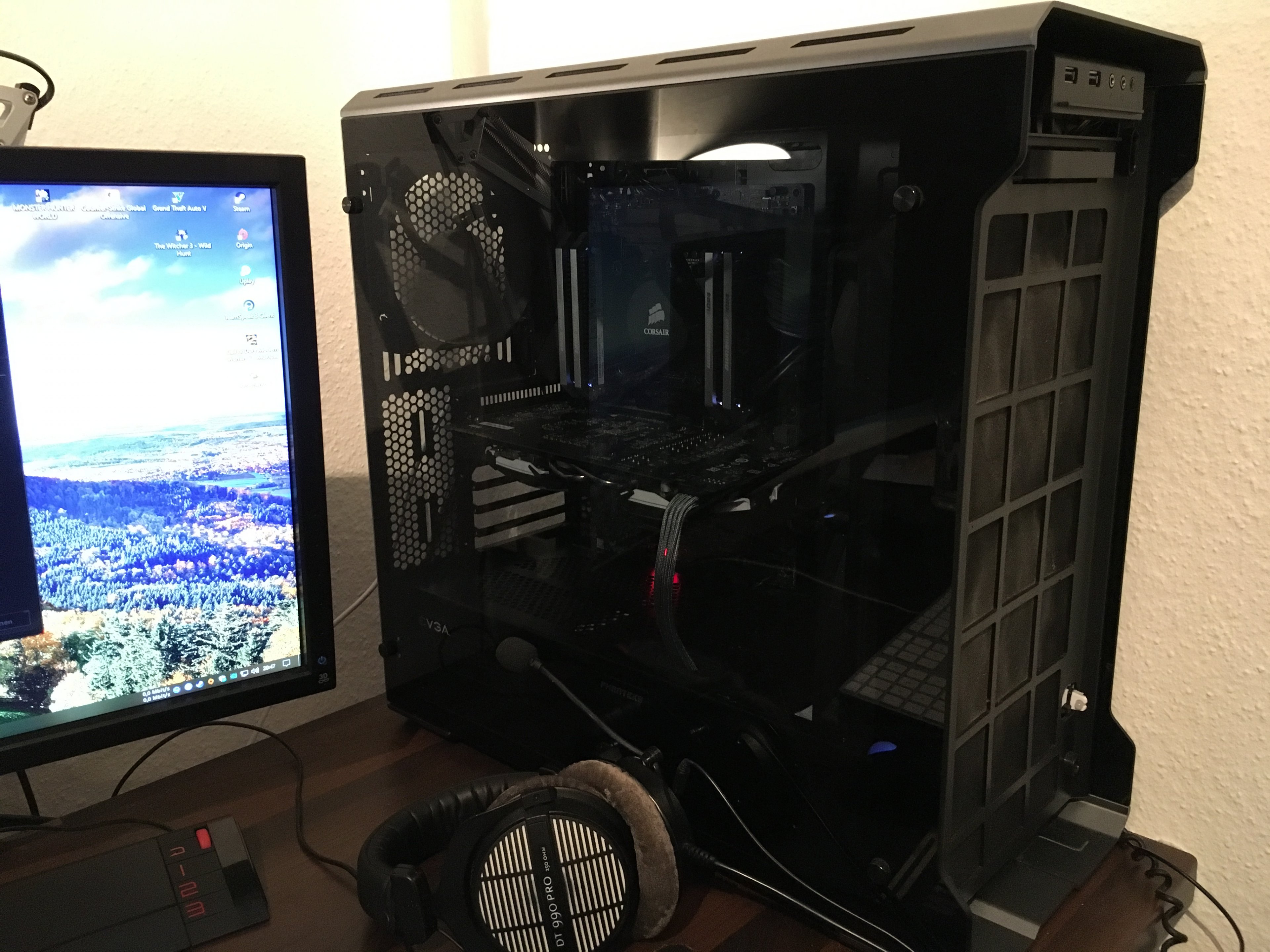 - Fractal R6 ( Qualität nicht dem Preis entsprechend ( Materialstärke, Verarbeitung, nur 2 SSD Trays dabei etc. blabla, dazu extrem warm durch Dämmung und miesem Airflow der Front - ich hab selten so eine verbaute Front gehabt -> mit offener Tür sind es EINIGE °C weniger)