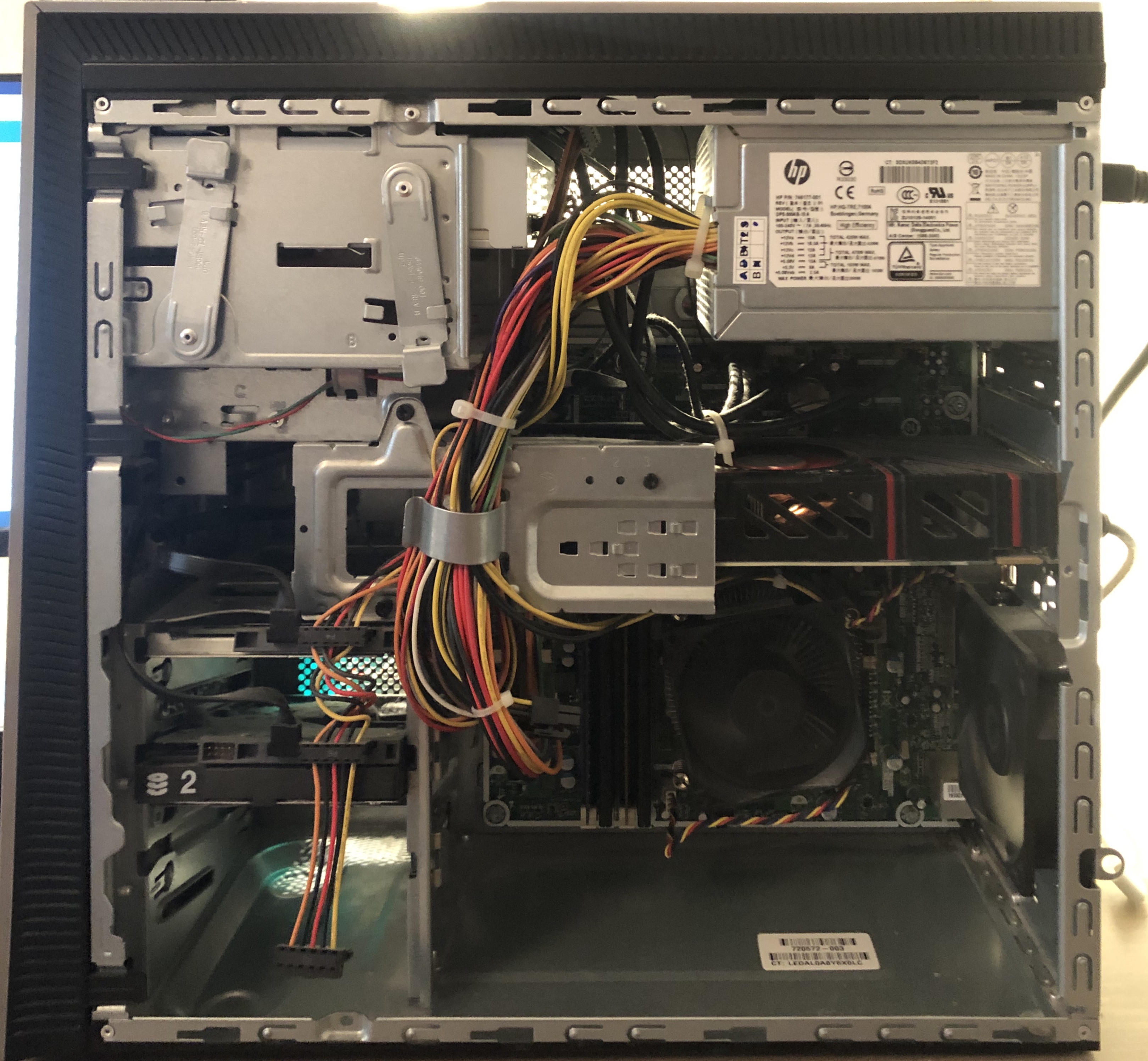 also den kühler kannste schonmal tauschen (inkl. neue wärmeleitpaste)..u. vorher vielleicht mal innen auch sauber machen, ist ja alles staubig. die netzteilangaben kann man nicht lesen, viel zu unscharf u. klein das bild..aber denke wenn man nach dem typenschild googelt, weis man was da alles drinne ist. ist halt ne fertigkiste, da ist nix mit groß aufrüsten (wobei es ein gescheiter kühler eigtl. tun sollte) just my 2 cent