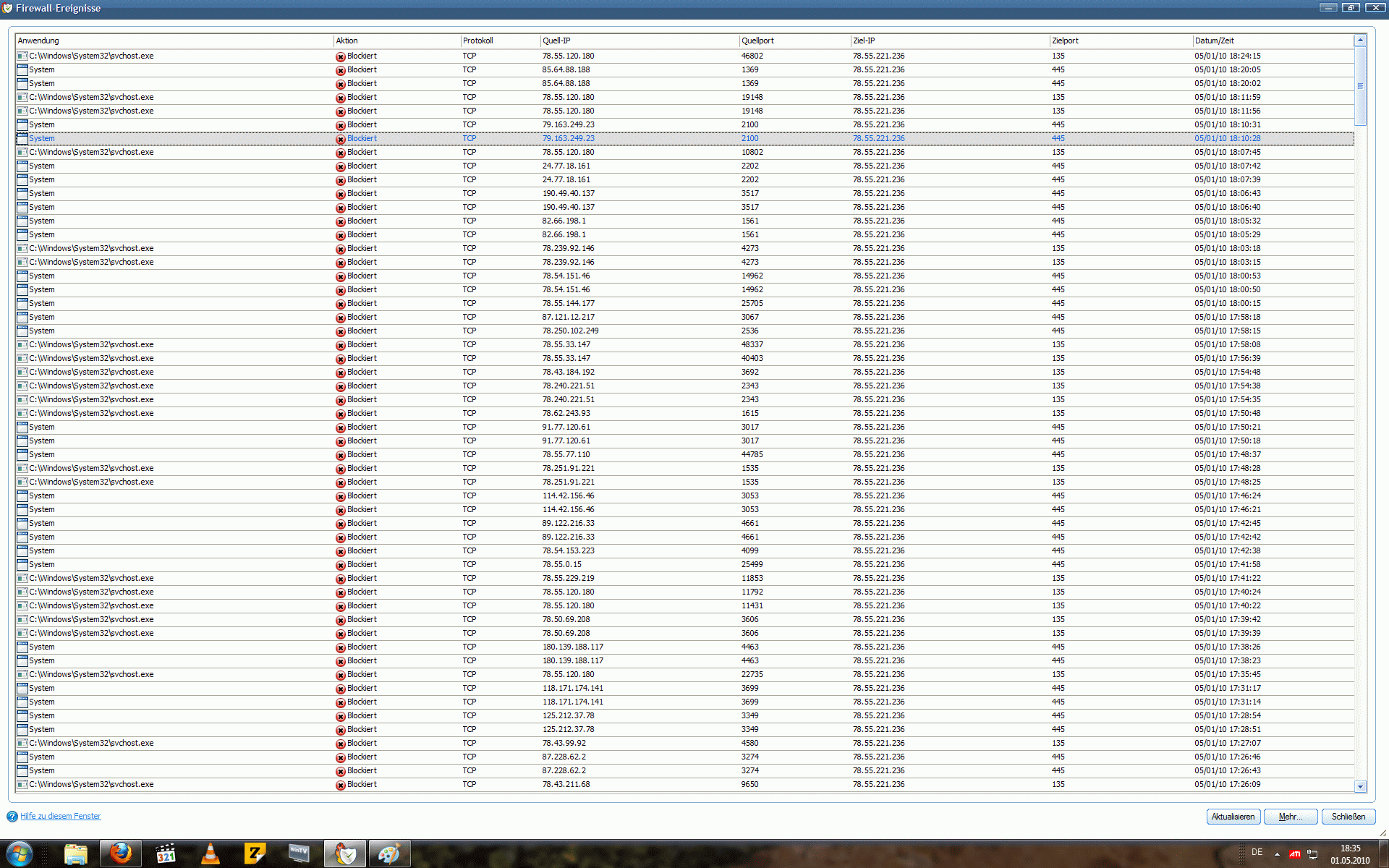 man sieht welches programm gerade sendet oder empfängt, das schöne ist man sieht auch die blockierten programme, die versuchen sich zu verbinden oder einfach nur unaktiv da stehen.