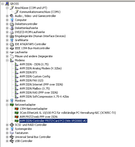 Dann ist auch keine Netzwerkkarte drin, ist es evtl nur eine ISDN Karte, die denselben Anschluss hat wie eine Netzwerkkarte? Mach mal einen Screen vom Gerätemanager. Habe mal ein Bild angehängt mit den geöffneten Geräten die für Dein Vorhaben wichtig wären, mach auch so ein Bild und hänge es mal dran. Wenn Du noch unbekannte Geräte hast, öffne diesen Pfad auch noch.