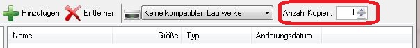 Aktuell habe ich Roxio aber da kann ich die Anzahl der kopien nicht eintragen.
