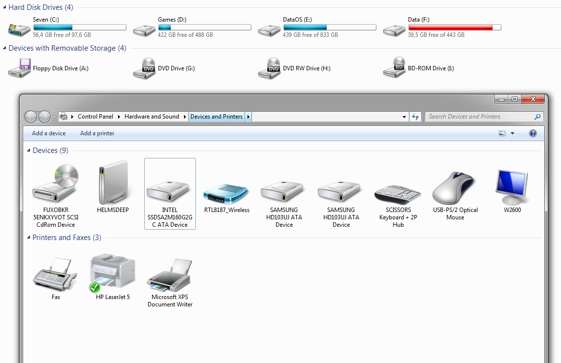 Bei der Win 7 (MSDNAA-Version Professional x64) Install meckert Windoof, dass ihm CD/DVD Treiber fehlen(???) und es geht nicht weiter. Wenn ich mit dem alten Win7 (RC1 x64) von der HDD starte erkennt Win die SSD als Device, zeigt sie aber im Explorer nicht an. siehe auch screenshot.