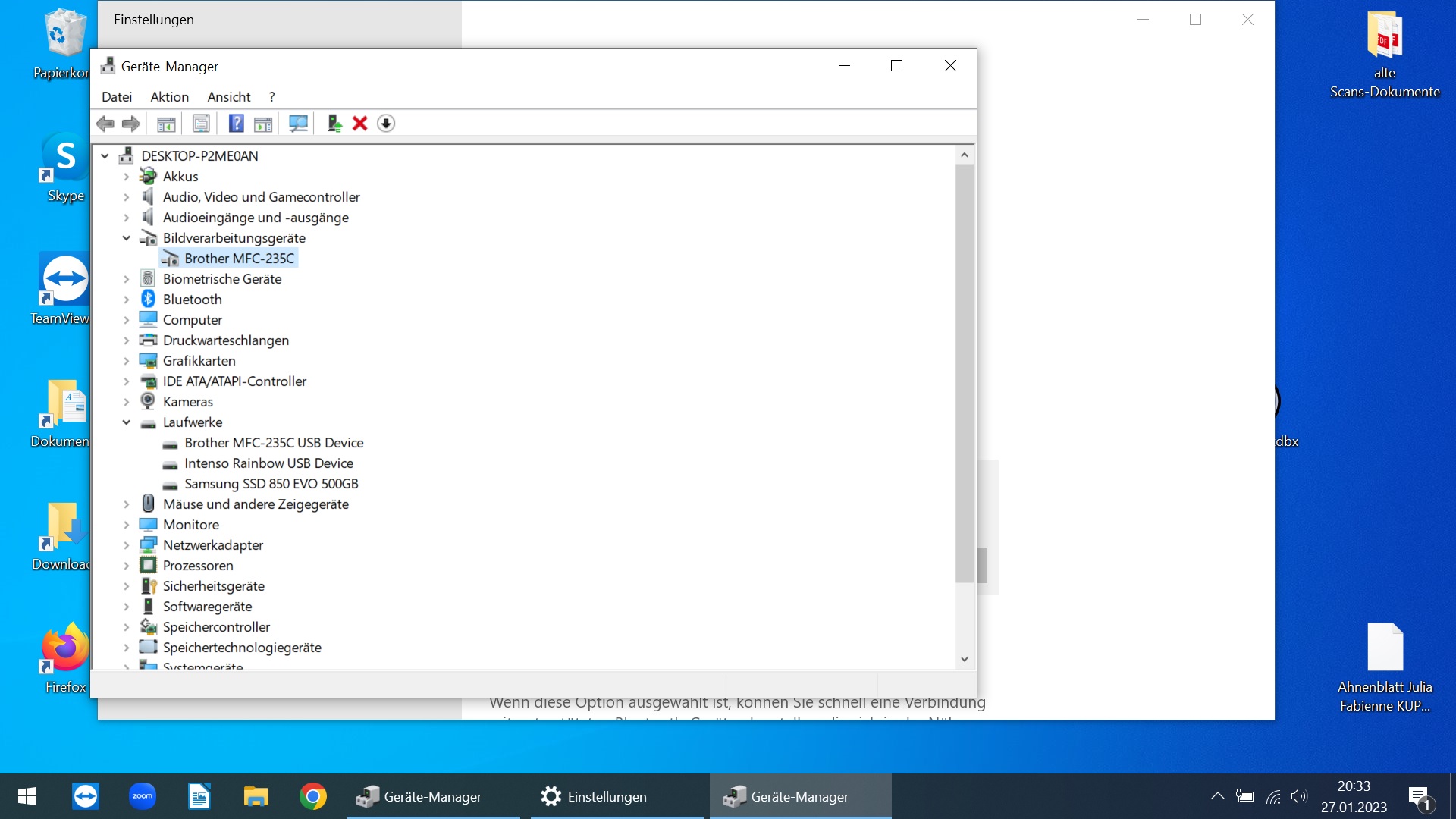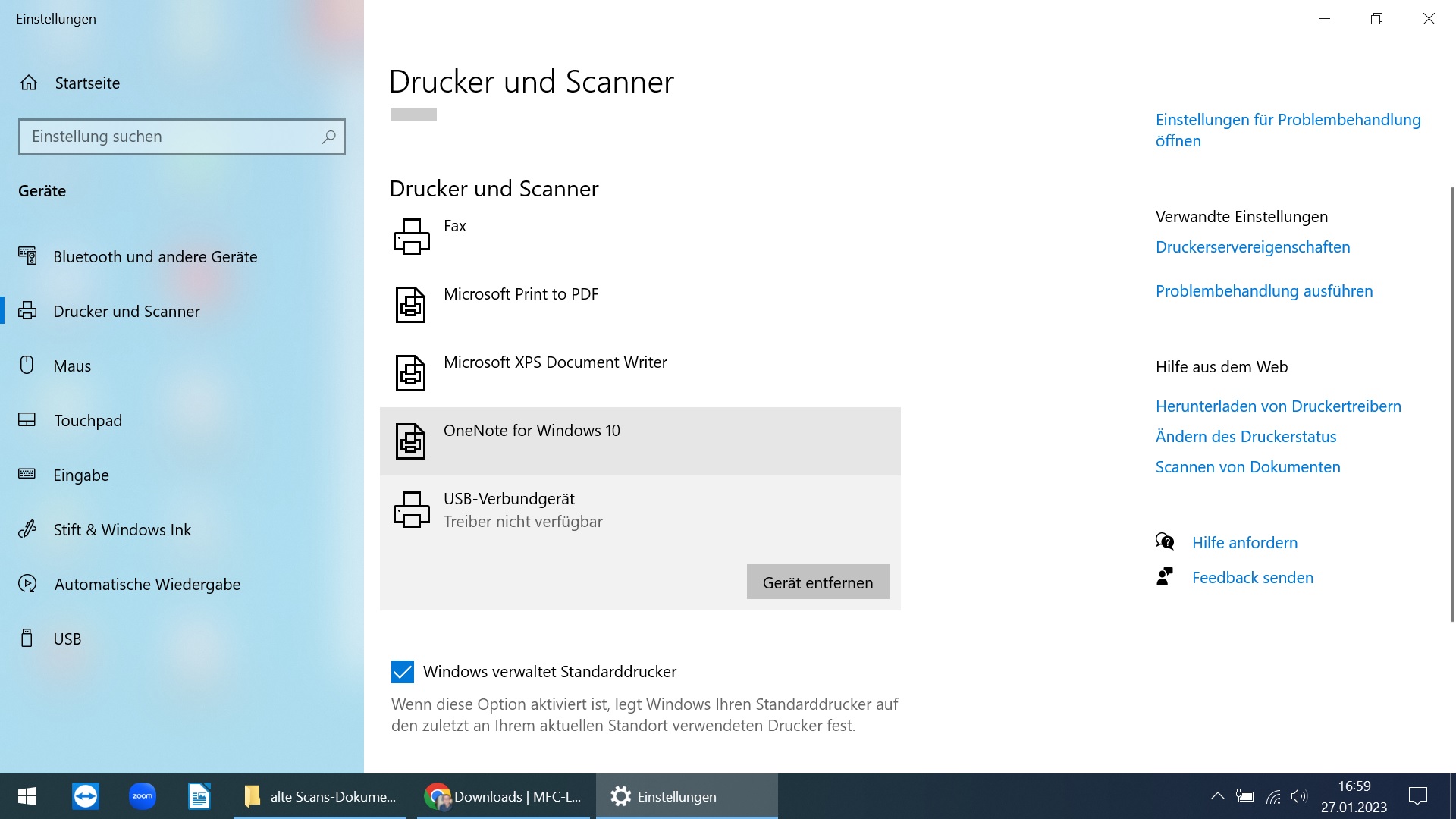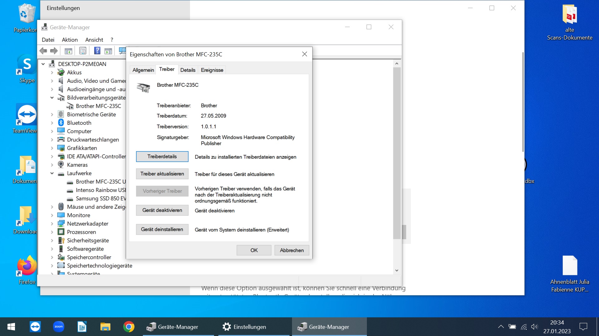 Es handelt sich dabei um einen Brother MFC-235C und einen Lenovo Laptop mit Windows 10. Laut Brother Seite sollten die Drucker Treiber mit Windows kommen. Wenn man den Drucker abschaltet, kommt kurz ein Popup, dass ein Gerät eingerichtet wird, jedoch wird der Drucker dann nur als USB-Verbundgerät angezeigt, der über keinen Treiber verfügt.